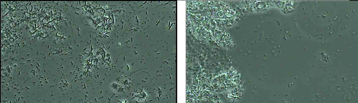 左:治療前(つぶつぶが細菌です) 右:治療後、つぶつぶがほとんど見られなくなりました