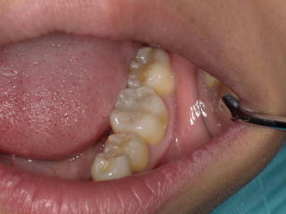 銀歯が1つあり、目立ちます 保険の効く白い樹脂で詰め直しました。